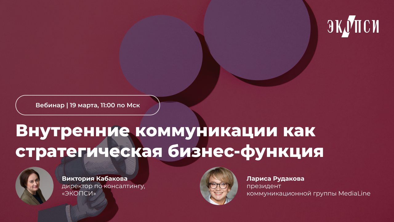 Поговорим об изменении роли внутрикома за последние 5 лет, обсудим отношение бизнеса к теме коммуникаций, узнаем ключевые смыслы коммуникаций. | | | | | Как проявляется интерес бизнеса к теме внутренних коммуникаций. Динамика отрасли, анализ тематики проектов и конференций, тренды рынка — расскажем и покажем ответ на запросы бизнеса в конкретных кейсах и цифрах. | | | | Ключевые задачи внутренних коммуникаций как бизнес-функции: стратегия, трансляция смыслов, анализ эффективности — легко сказать, но насколько трудно сделать? | | | | | | | | директор по консалтингу, «ЭКОПСИ» Бизнес-консультированием занимается более 10 лет. Разрабатывала и реализовывала разнообразные маркетинговые и коммуникационные программы (для сотрудников и клиентов) в строительной отрасли, выставочной деятельности, образовательной области и организации научных конференций. Автор курса по внутренним коммуникациям, член Жюри Премии InterComm. | | | | | | президент коммуникационной группы MediaLinе Глава оргкомитета премии InterComm, председатель отраслевой комиссии по внутренним коммуникациям Ассоциации менеджеров России. Руководитель программы «Внутрикорпоративные коммуникации в системе управления человеческим капиталом», доцент Финансового университета при Правительстве Российской Федерации.